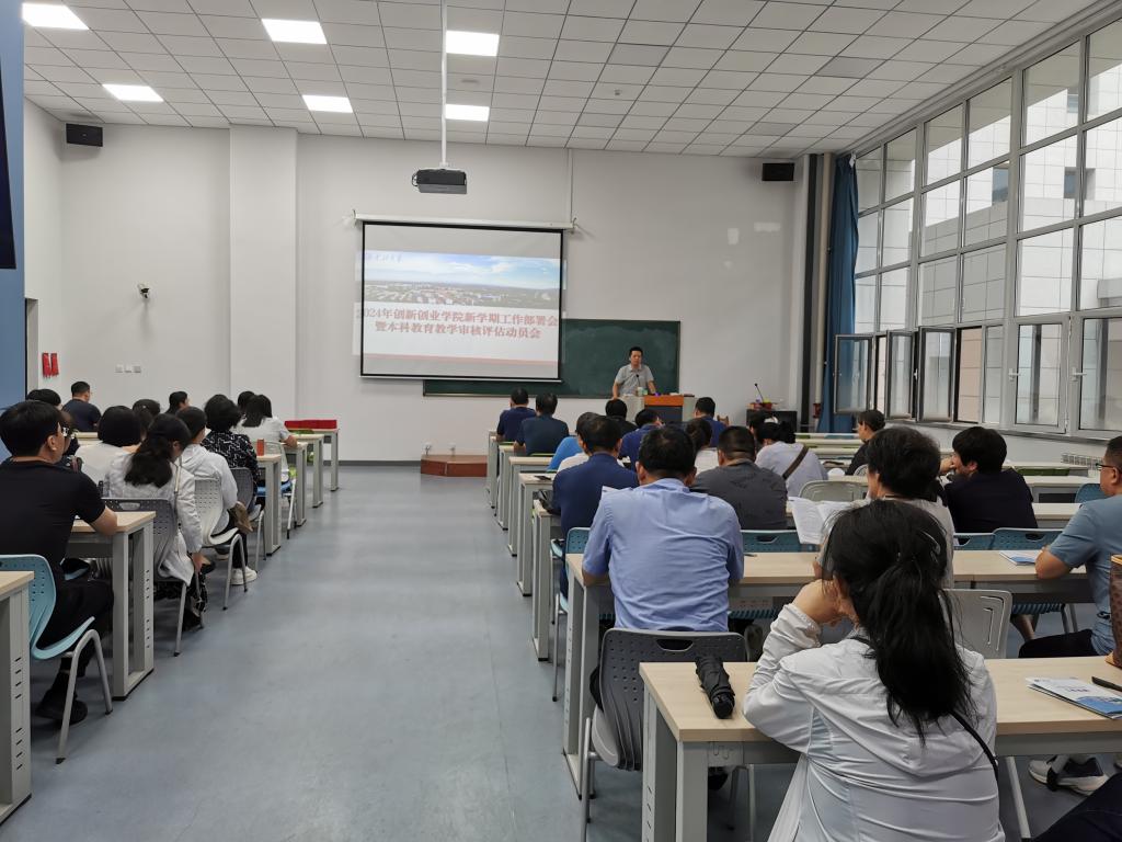 在学院C座202教室召开新学期工作部署会暨本科教育教学审核评估动员会。会议由院长王黎明主持,院党总支书记高春强、工程训练中心副主任冯再新、各教学部主任出席,全院教职工参加了会议。