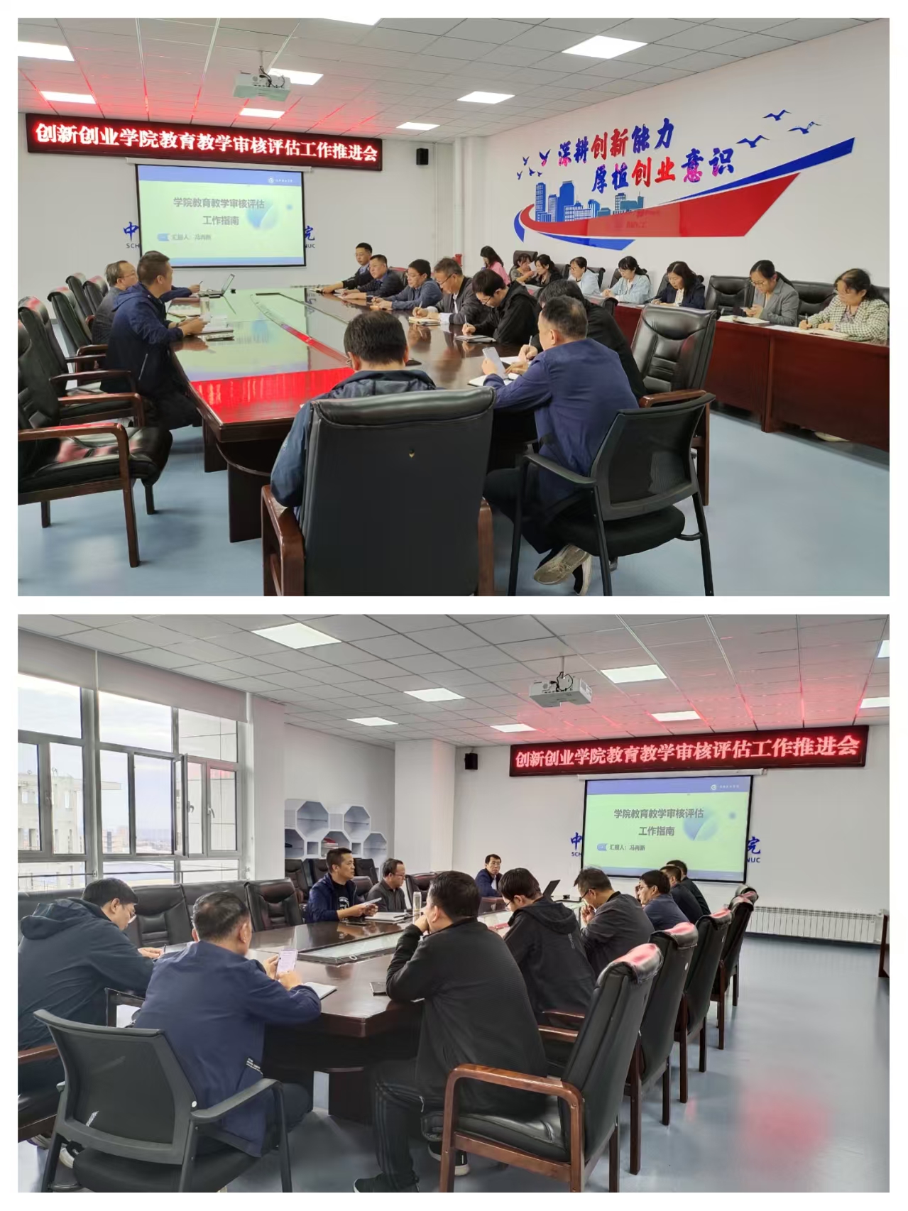 在A406会议室召开本科教育教学审核评估工作推进会。学院党总支书记、院长、各行政科室负责人、各教学部负责人、各党支部书记、支部委员参加了会议。