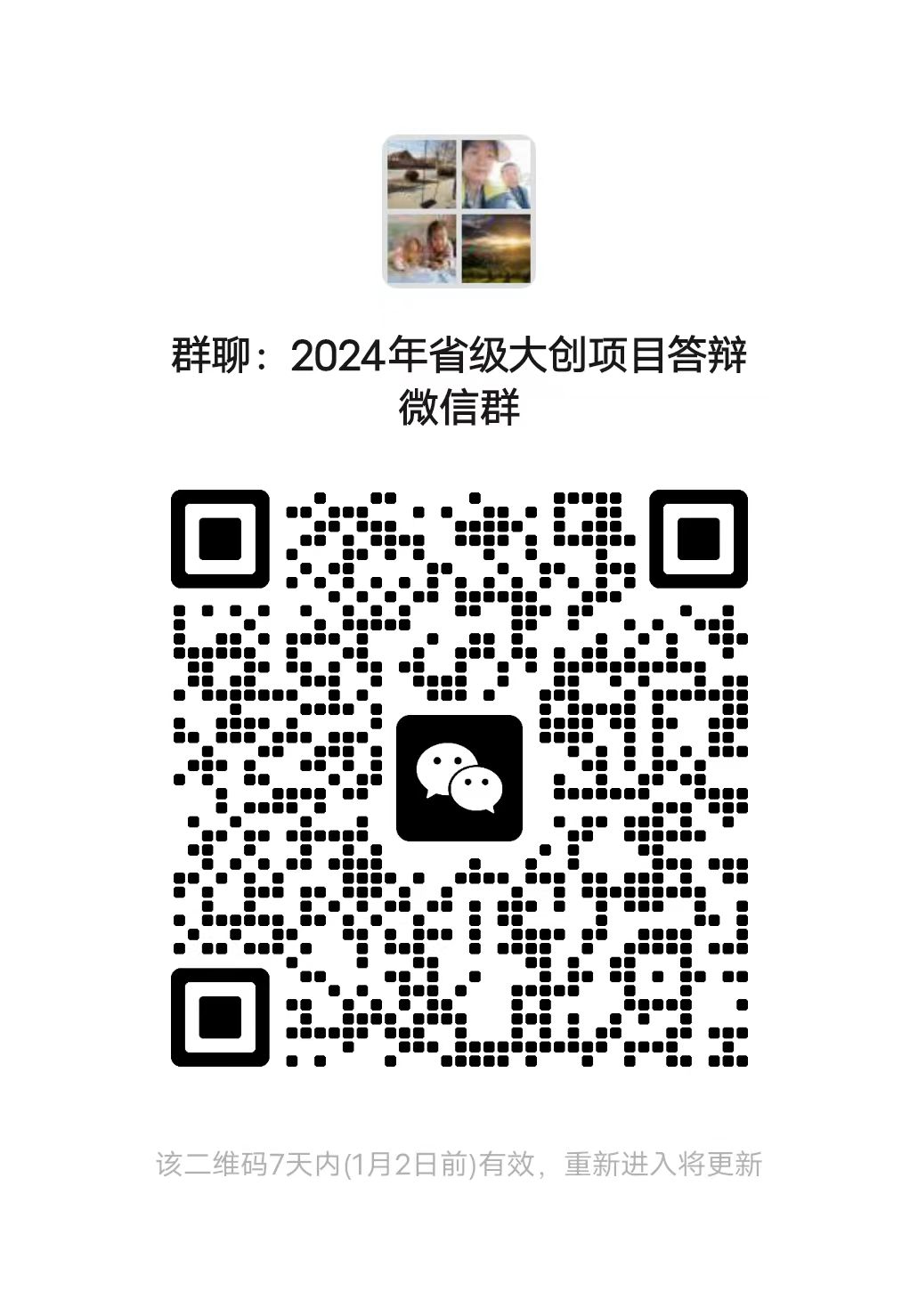 2.参加答辩的项目负责人扫描二维码,加入“2024年省级大创项目答辩微信群”,并将群名片改为“学院+姓名+项目名称”,便于接收通知。
